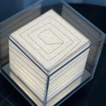 Zeitloses, minimalistisches Design: Würfelform aus Glas und Stoff für moderne Interieurs.
