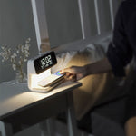 3-in-1 Smart Design: Vereint LED-Beleuchtung, kabelloses Laden und digitalen Wecker in einem kompakten Gerät.